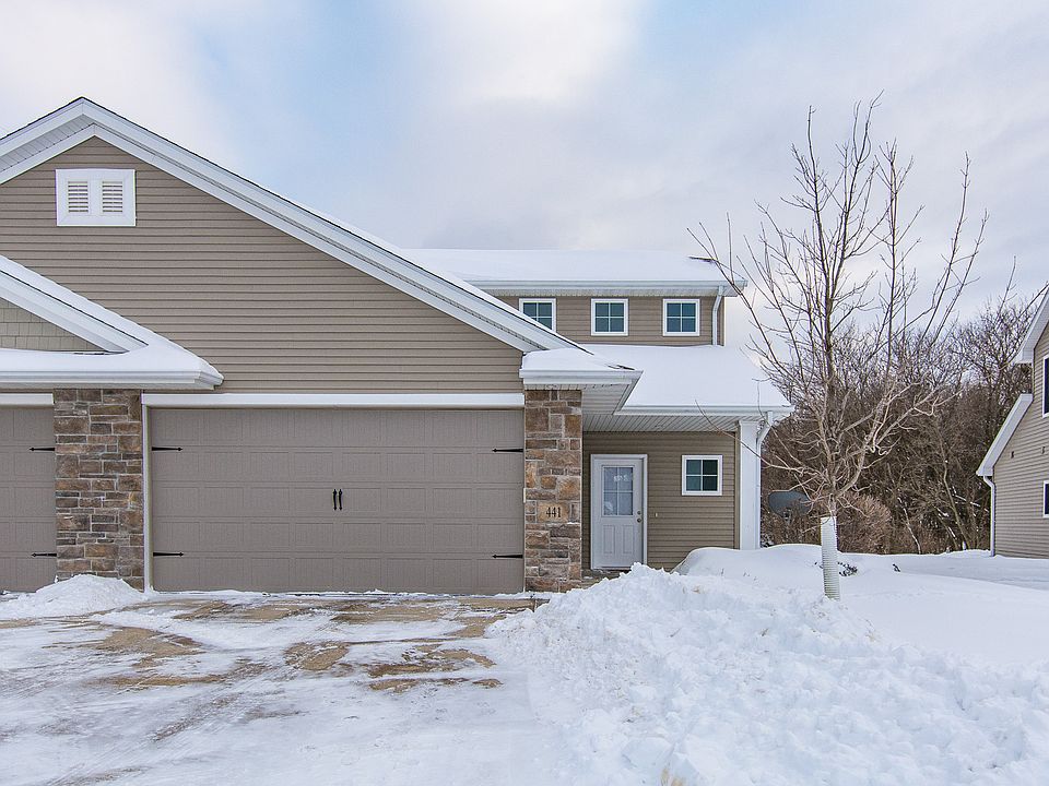 441 Cimarron Drive, Hiawatha IA Main level master condo in a great Hiawatha location overlooking St Andrews Golf Course! The main floor features a formal dining room, open kitchen with maple cabinets, a center island with granite top & breakfast bar, stainless appliances (including refrig), great room with corner gas fireplace and a master suite with a large walk in closet & double vanity in the private bath. Upstairs you will find 2 additional bedrooms, a full bath and a versatile loft area that can be used as a rec room, media room or office area. Quality built, this condo has 2x6 exterior walls, 95% energy efficient furnace & a tankless water heater. Other great features include main level laundry (machines included), 9' ceilings on the main level, large pantry closet with solid shelves,12x12 patio with a beautiful wooded view, rough in for whole house audio, 2 car attached garage. Buyer agents welcome.