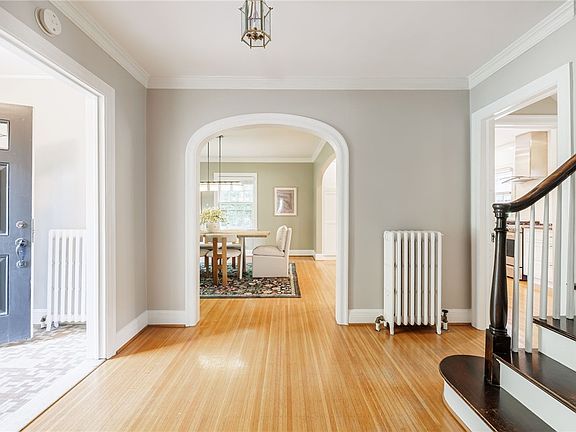 Welcome to 441 Claybourne Rd! You’ll be greeted by a freshly painted exterior (2025), a manicured yard draped in magnolia, dogwood & crabapple trees creating a canopy for the paver walkway. This move-in ready 5 bedroom 3.5 bath home has room to grow with over 2,700 SqFt of living space (including 235 SqFt on 3rd floor). Step inside to timeless character like arched doorways and built-ins, original hardwoods and large crown molding combined with modern updates like open floorplan and renovated kitchen & baths. Magazine-worthy kitchen remodel with inset cabinetry, island, granite counters, classic subway tile backsplash and stainless steel appliances. Kitchen overlooks formal dining area, perfect for entertaining! Spacious formal living room with wood burning fireplace and French doors to 3-season room. Huge bonus room in rear of home has an air-tight cast iron Lange freestanding wood stove, brand new carpet (2025) and would make for the perfect den/family room, playroom or office. Sliders to backyard and patio making outdoor entertaining a breeze! Back inside, a mud hall and half bath completes the first floor.