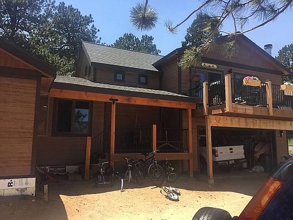 Mountain home on a double-lot! Features include three bedrooms, full bath, dining area, kitchen, family room, laundry room, mud room, and an attached two car garage with a finished carriage house above. Huge lot for the neighborhood provides lots of yard, complete with fencing. Convenient location is within walking distance of the hospital, downtown, and Lake Estes. Close to RMNP and endless hiking trails.