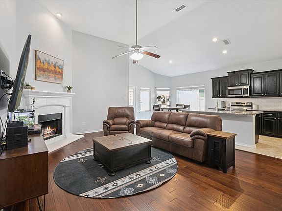 The split floor plan provides privacy for the primary suite, while the open-concept layout creates a seamless flow between the living, dining, and kitchen areas, ideal for both relaxing and entertaining.