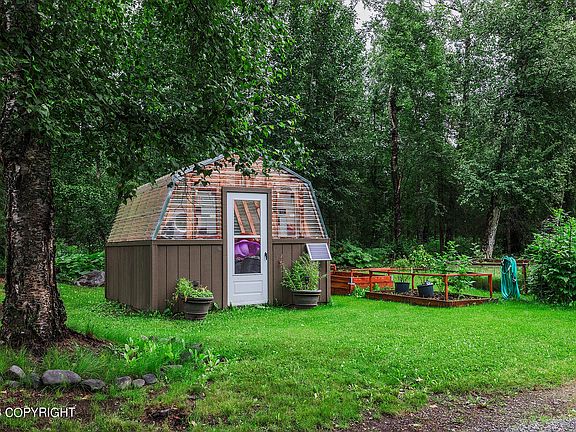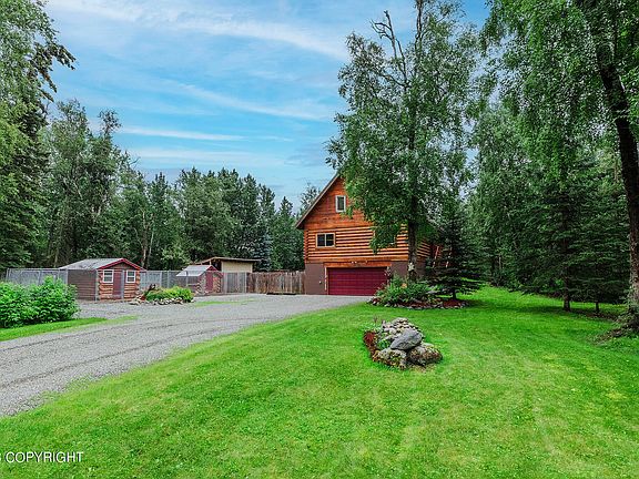 Charming 3-bed Alaskan log home in central Wasilla, showcasing pride of ownership and meticulous attention to detail. Includes established hobby farm with greenhouse, berry garden, apple trees, and custom log outbuildings for Chickens! Tranquil neighborhood, no HOA, easy commute to Anchorage. Vaulted ceilings, log fireplace, sustainable wood supply, and custom lighting.(See Additional Remarks)Meticulously maintained log home near Wasilla's core embraces the Alaska spirit. Well-crafted, featuring vaulted tongue and groove ceilings, this home boasts a charming blend of rustic beauty and modern convenience. A haven for hobbyists, it offers RV parking, a sprawling 1000+ sqft garage, and a fenced yard that frames a thriving hobby farm. New appliances, including a farm sink, grace the updated kitchen, while the Alaska-themed ambiance infuses every room. This ideal commute location to Anchorage ensures easy access to city amenities, making it the quintessential Alaskan retreat.