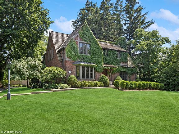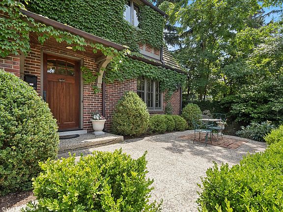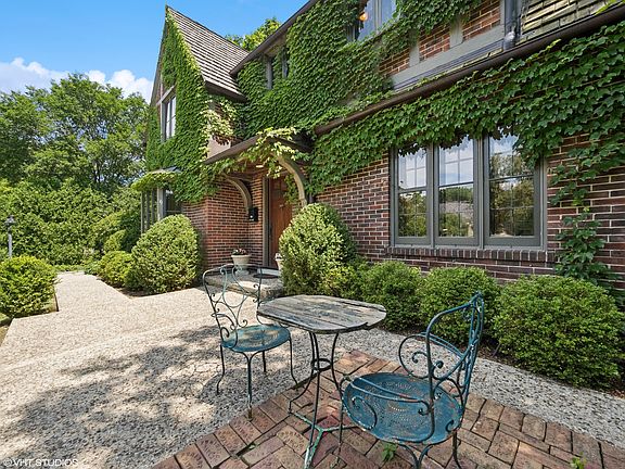 This renovated brick Tudor blends timeless elegance with exceptional quality in the heart of East Lake Forest. Ideally situated on an elevated lot, the home is within walking distance to the Metra station, schools, Gorton Community Center, Market Square, the library, and Lake Michigan. Step into the refined foyer with graceful arched doorways that open to a spacious living room and formal dining room, both ideal for entertaining. A bright and expansive family room features a coffered ceiling and dual sets of French doors leading to a brick and paver patio, perfect for outdoor gatherings. The newer kitchen features white shaker cabinets, quartz counters, a custom island with pendant lighting, and stainless steel appliances, is attached to a charming breakfast nook with a built-in hutch wet bar. The second floor features the primary suite with an ensuite bathroom and a huge attached dressing room with southern exposure. Four additional bedrooms, a hall bathroom, and a Jack-and-Jill bathroom complete the second floor. The unfinished basement has high ceilings with plenty of space for a recreation room and tons of storage. Additional highlights include an updated powder room, front and rear staircases, cedar shake roof with copper gutters and downspouts, professionally designed landscaping, gas lanterns, exterior lighting, and updated mechanical systems. This home is the perfect balance of classic craftsmanship and modern comfort in one of Lake Forest's most desirable locations.