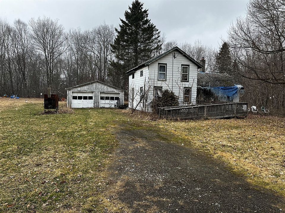 With building costs so high, think of the savings on starting your own homestead. 4.3 Acreage ($2,000 per acre) of generally level and cleard land ($3000) in the Windsor School District. Double Garage with concrete pad ($3000). Low taxes and cell service. Well dug ($12,000), cesspool already set up, and Eletric ran to the house ($3000) **google estimated prices*** Sold "As Is" Cash deal. Close to highways. Cautiously go in, no power, bring a flashlight. Mineral rights to convey.