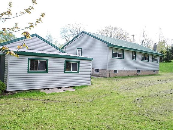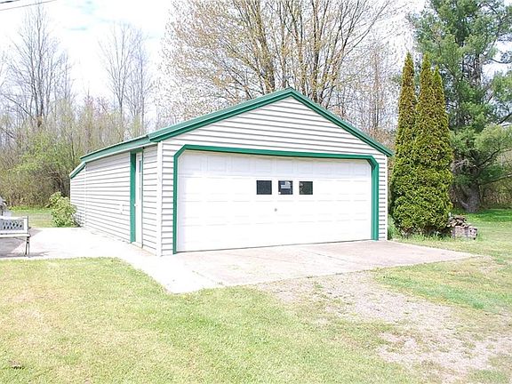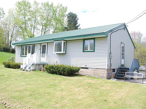 Nicely maintained three bedroom stick built ranch home on almost one acre- large living room - eat in kitchen-new refrigerator-recently updated bath rooms-partially finished basement with wood stove-all siding, windows, and roof have been recently replaced -city water is connected - detached 2-car garage with extra storage area or workshop - nice convenient location!