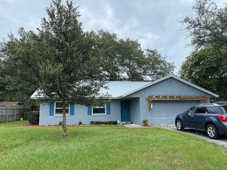 Make yourself at home in this charming 3 bedroom 2 bathroom property in a quiet neighborhood with an easy walk to the Intracoastal Waterway. Enter into your spacious open floor plan and be greeted by plenty of natural light through the double sliding doors. The Great Room offers high vaulted dark wood ceilings with offsetting white wood beams, built in, and wood burning fireplace. Almost all the work has already been done. Nearly new metal roof, plumbing, water heater, luxury vinyl plank flooring, cabinets, and granite counter tops. Built on an 80 ft wide double lot, this concrete block constructed property offers a private patio and fully fenced backyard. All that is missing is you! Come see your new home within minutes of everything St. Augustine offers.
