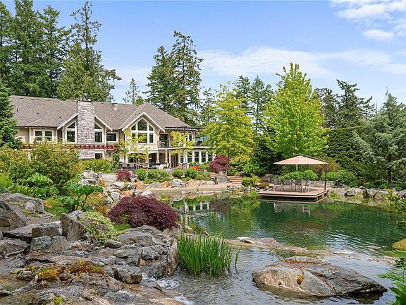 Welcome to Glendower, a private 2.7-acre gated estate just 15 minutes from Downtown. This 7,000+ sq ft executive home is surrounded by over $1.5M in landscaping, including a recreation swimming pond with a dock and beach, lush gardens, waterfalls, and an outdoor kitchen. Inside, enjoy soaring ceilings, in-floor heating, and sun-filled, south-facing living areas. The main level features a grand kitchen, formal dining and living rooms, an office, and a primary suite with dual walk-in closets, heated floors, and deck. The lower level offers a state-of-the-art theatre, live-edge bar, sunroom, and a 2-bed, 2-bath legal suite. Two double garages, multiple flex spaces, and extensive upgrades throughout complete this one-of-a-kind property. This is a rare opportunity to own a home where elegance and privacy converge. Your private resort awaits. Contact us today to schedule a private viewing. Detailed information sheet and full contractor/maintenance portfolio available upon request.