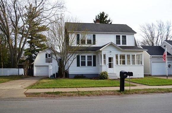 Charm & character throughout! Enclosed front porch leads to sun drenched living room w/character wide wood trim & arched doorway to formal dining area. Spacious eat-in kitchen offers ample cabinet space & tiled backsplash. Upper level master w/walk-in closet & hardwood floor. Upper level full bath + main level half bath. 2.5 car detached garage w/walk-up loft space. Located near park & hwy access