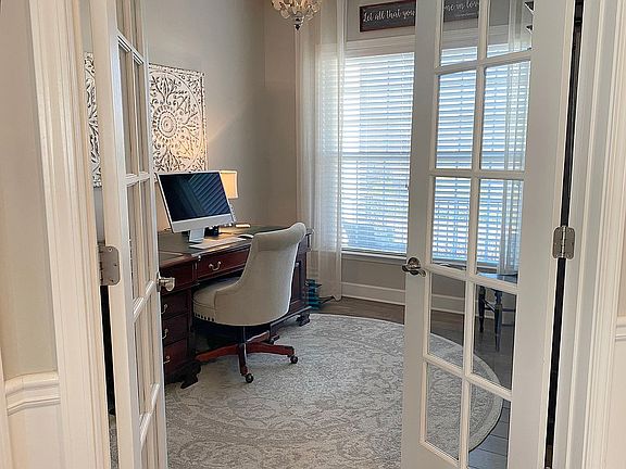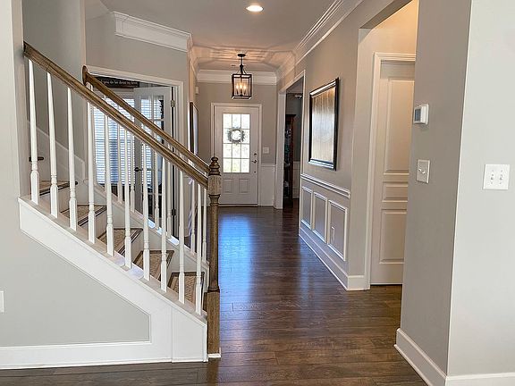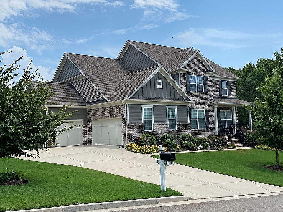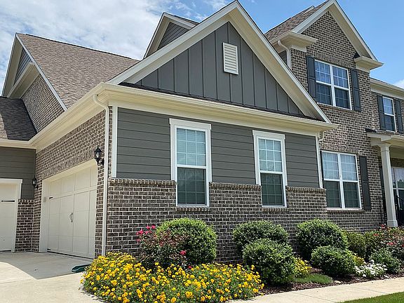 This stunning 5100 square-foot, 5-bedroom, 3-side brick home, with a 3-car garage and a rocking chair front porch is located in the sought-after Woodmont Golf & Country Club. The interior features gorgeous barn-wood style laminate floors throughout (in all bedrooms!), wooden stairs with white risers, upgraded farmhouse light fixtures, and shiplap feature walls. The large, inviting eat-in kitchen is an entertainer’s dream and features white cabinets, upgraded stainless appliances, a huge island, and an abundance of quartz counters. The main floor includes a spacious living room with a gas fireplace and lots of natural light, a beautiful office/library with French doors, a bedroom (currently used as a guest bedroom -- would also make a nice main-floor playroom) with a walk-in closet and a full bathroom, a powder room, 2 coat closets, and a dining room with a butler’s pantry. Open floorplan! The owners’ bedroom is upstairs and includes a large walk-in-closet, an ensuite bathroom with a double-sink vanity, soaking tub, separate toilet room, and a frameless tile shower. An additional living space/loft can be found upstairs, along with 3 additional spacious secondary bedrooms, a full bathroom with a double-sink vanity, an upstairs laundry room, and 2 linen closets. All the bedrooms in the home have walk-in closets! The full daylight basement is about 90% finished and has a HUGE open rec room, a full bathroom, a flex room/office with a walk-in closet, a workshop, a finished walk-in closet under the stairs, and an unfinished area for storage. The home is highly energy-efficient; the entrance to the attic space zips closed with an insulated cover, the home has programmable thermostats and low-maintenance vinyl windows. The siding has been recently painted. The lot is beautiful and has extensive professional landscaping. Two natural/common areas with a peaceful stream are found next to the home and across the street, creating privacy, beauty, and room to breathe.