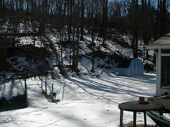 Dreamland on 3+ acres! 3br Cape Cod on picturesque wooded lot. Huge 11'x33' Family/Game Room with woodburning stove for entertaining, fun or just relaxation. Scenic 3 Season Sunroom with wood burning fireplace that looks out over backyard that features a self-contained pond, water fountain, and bridge over private stream. 1st Floor Bedroom/Study/Den & Half Bath. Parking for 4+ cars. Security System included.