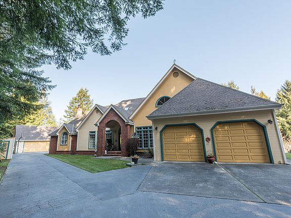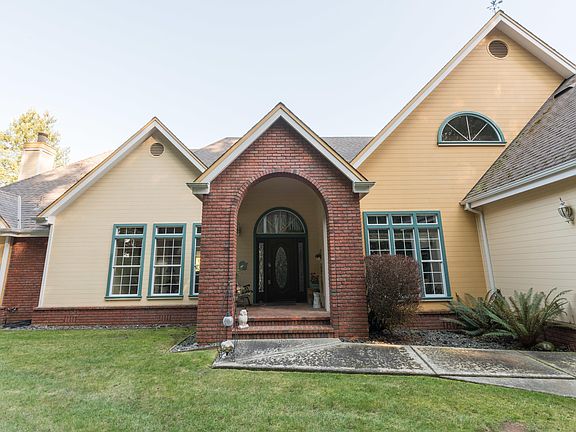 This one of a kind custom home is nestled up a private driveway and situated on 2.5 acres of gorgeous Scenic Redwood Forrest. Providing plenty of privacy, feels remote but only 5 minutes from town &15 minutes to airport. This 3 bed /4.5 bath (5,320 sq ft) first impresses with beautifully manicured front yard with all the rich features; master suite on main level with an enormous master bath incorporates jetted tub, fireplace, double vanity, spacious bedrooms, oak hardwood flooring, abundance of natural light, faulted ceilings, chef's kitchen, great room, family room opens breakfast area & kitchen, game room with wet bar, endless storage. Attached 2 car garage & additional detached 2 car garage/shop, metal RV storage. Currently, this property has a contingency on a lot split in progress.