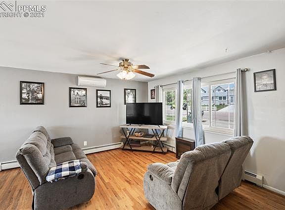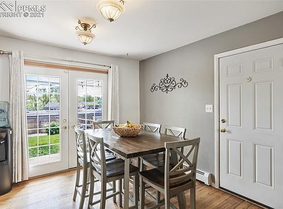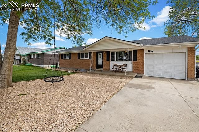 This one is a CLASSIC. 1960's red brick charm with shutters and mature trees makes this little treasure quite appealing. Some of the valued features of this home include original hardwood floors, finished basement, ceiling fans in all main-level bedrooms and installed radon system. Beautiful French doors give splendid natural light to dining area. Your dogs will love the generous dog run in the backyard! Prime location next to Fort Carson, south campus of Pikes Peak Community College, retail and shopping. Mountain trails are just minutes away. 2021-06-06