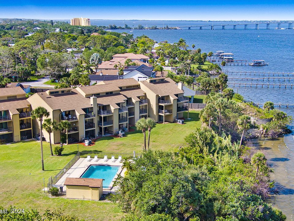Live the Florida dream lifestyle or rent it! This 2-bedroom, 2-bathroom CONCRETE BLOCK condo has 2 balconies and is centrally located in the Melbourne RIVERFRONT neighborhood of River Bluff Condos. Updates and improvements include HURRICANE IMPACT WINDOWS and SLIDERS, water heater (2022), AC (2018), ACCORDION SHUTTERS, tile flooring, and skip trowel ceilings. Monthly $494 condo fee includes HOMEOWNERS INSURANCE, internet, cable, water, sewer, trash, and pest control! Your only bill will be electric! This unit offers above average attic space with the ability to fully stand up. SELLER WILL PAY ALL POSSIBLE PENDING ASSESSMENTS AT CLOSING.