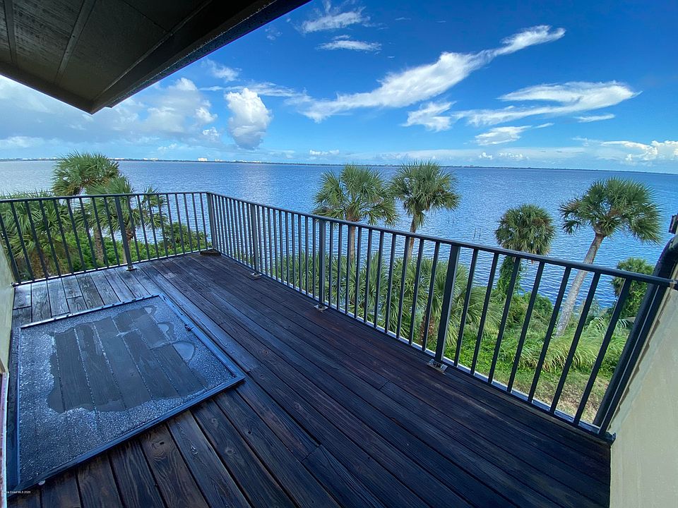 River Bluff Condo with immaculate views. This second floor, three story condo has two bedrooms, two and a half baths, roof top nook, open kitchen, dining room and even a gas fireplace. Walk out balconies from living room on 2nd floor and master bedroom on third floor to 180 degree views of the Indian River. One covered parking space and open parking. Hop, skip and a jump to US-1