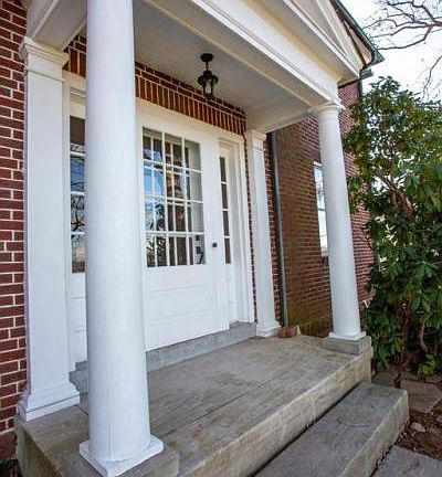 This elegant brick Colonial home sits in a peaceful wooded setting. The front porch or the second-floor balcony give a beautiful view over downtown Ephrata. The partially wooded back yard offers plenty of privacy and the woodland to the rear invites wildlife to your yard. The extensive mature landscaping includes giant oak trees, rare weeping cypress, multiple mature Japanese maples, tulips, ivy, hosta, hydrangeas and pachysandra. The detached garages give you parking for 5 vehicles as well as storage in the attic space. You will have plenty of room for hobbies or a side business, or anything you need a nice workshop for. The lower garage is 19X19 and the upper garage is 23X35. The first floor of the home has beautiful original hardwood as well as tile flooring. The kitchen is updated with quartz counters and plenty of cabinet space. There is a large dining room as well as a family room with a brick fireplace. Both sides of the home have a sunporch that would work perfectly for separate offices, especially since both have outside entrances. The second floor has 3 bedrooms, a full bath and access to the balcony over the one sunporch. There is a full unfinished attic for plenty of storage space. The basement includes a finished room for flex space, a shower, laundry and a number of storage or hobby rooms. The basement also has an outside entrance. The original charm of this home and the peaceful wooded setting give you that England bed and breakfast feel. Schedule a time to take a tour!
