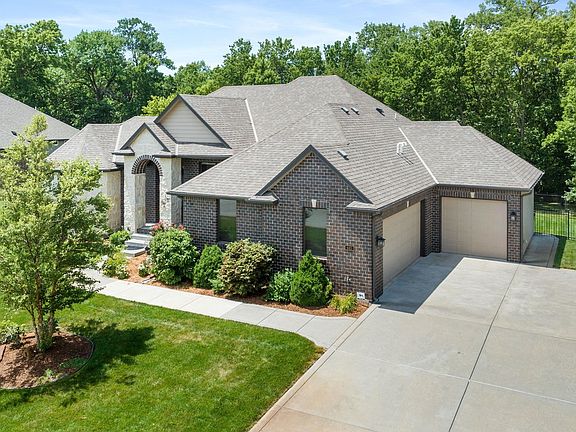 This incredible 2013 custom build is the perfect home for all of your holiday hosting and outdoor parties! Situated on a fully fenced, wooded lot near the Arkansas River, in the upscale neighborhood of Valley Creek Estates, with more than 3,600 sq. feet of living space, this home is full of unique amenities and wow factors! You’ll first notice the impeccable landscaping and stunning brick and stone exterior with a grand entrance welcoming you into the formal dining and living room with beautiful natural sunlight and stunning views with the floor the ceiling windows. There is truly a stunning view from every window in this gorgeous home! A bonus hearth room featuring a stone fireplace and custom built-ins is joined by the breakfast nook and Chef’s kitchen featuring poplar cabinets, a gas cooktop, built-in oven, granite counters, coffee bar and walk-in pantry. You’ll also love the main floor designated laundry room. The primary suite is accompanied by a spa-like master-bathroom with double sinks, and custom tiled walk-through shower and soaker tub. Downstairs you’ll love the large rec room with custom built in’s, wet bar for entertaining and 3 large bedrooms with plenty of storage too! But, the best part? Exit the walk-out basement with stadium steps and overlook the gorgeous saltwater pool and relax at the pool house! Indoors or out, you’ll be able to host every get together! The pool house is compete with a bar and bathroom! When you’re not in the pool, there are plenty of places to hang out, including the covered vaulted deck. In addition to all that is to love, the oversized 3 car garage is finished and gives you plenty of room for your cars, hobbies and storage. The driveway also makes the perfect parking space for your guests! Hosting in this home is easy with immense space and amenities, including the 4 zone Sonos system for music, dining areas and outdoor living space. This one is a show-stopper!