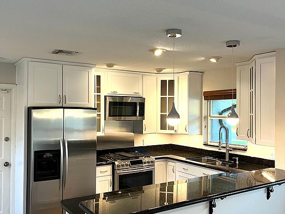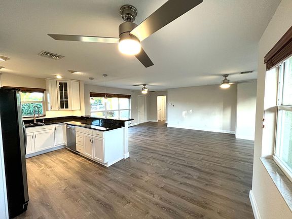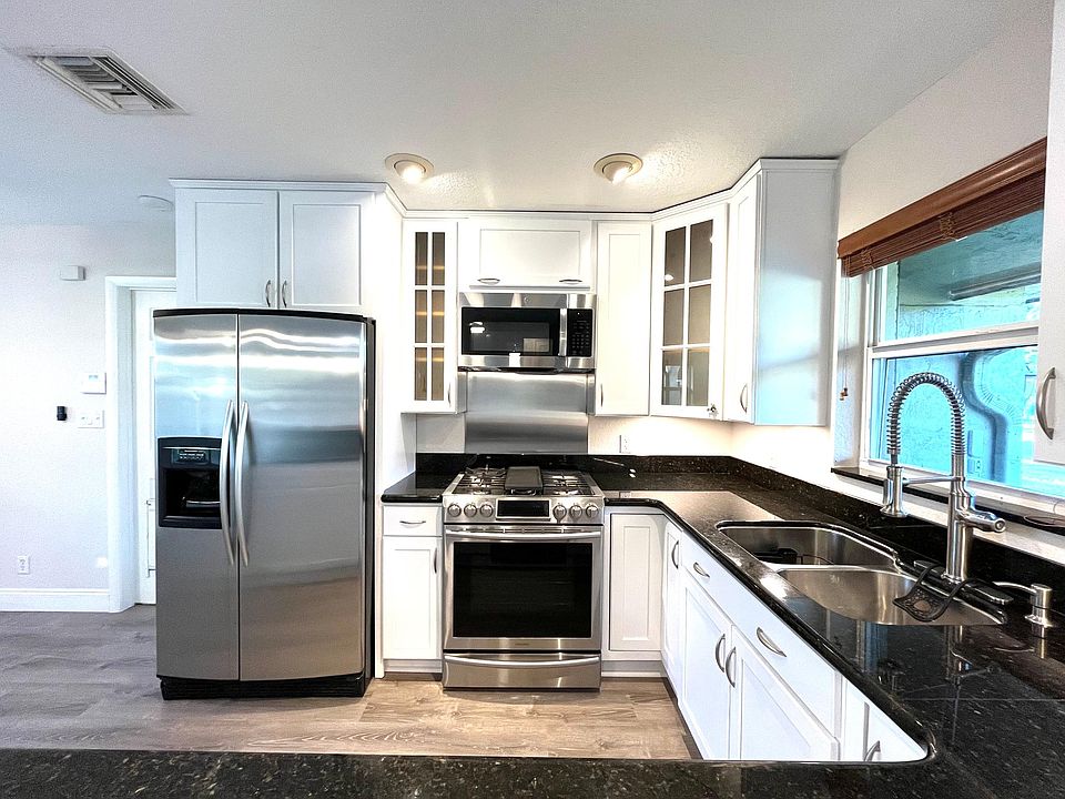 This beautifully renovated two-bedroom home blends modern comfort with timeless charm. Featuring top-of-the-line upgrades, including a brand-new roof, this residence is move-in ready and ideally located just minutes from downtown Boca Raton's vibrant shopping, dining, and beaches. From the moment you arrive, the home impresses with its welcoming curb appeal and inviting ambiance. Inside, you'll find impact windows and doors, high-end vinyl wood-look flooring, and a stylish granite kitchen complete with a gas range and stainless steel appliances. Freshly painted in a soft off-white, the interior exudes warmth and brightness. Step outside to a spacious covered patio that overlooks a lush tropical garden an ideal setting for pets, play, or peaceful relaxation. Additional features include a single-car attached garage, an in-suite washer and dryer, a tankless gas water heater, a whole-home gas generator, and a utility shed for added storage. Offering comfort, convenience, and quality throughout, this property is the perfect place to call home. Renter responsible for all utilities. Last month's rent due at signing. No smoking allowed. Up to two pets permitted.