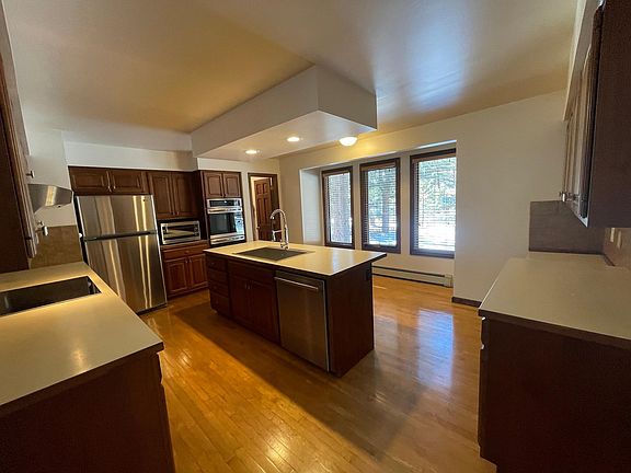 Majestic Trees in Serene Setting - This one is truly special, and the pix won't do it justice*Here's your chance to rent a custom ranch home in Pinewood Knolls- a heavily wooded area in the Black Forest of Franktown, blessed with 100-year-old Ponderosa Pines 20 minutes to Parker or Castle Rock*sunny 4.6 acre lot*Truly remarkable 3215 SF ranch home with a 2381 SF partially finished basement in pristine condition and ready for an extremely picky tenant that values perfection and is willing to maintain it*rarely will you EVER find a ranch with 5 beds and 3 baths just on the main level (one is a guest bedroom w/ensuite bath, one could be a media room, and any could be an office)*kitchen is richly appointed with Cherry cabs, deep stainless steel sink, stainless appliances with NEW double convection oven and electric cooktop, oak flooring and large walk-in pantry*Unique split great room provides 2 separate living spaces anchored by a rock wood burning fireplace w/inserts and walking out to a large sunny wood deck*formal dining with bayed window*palatial master suite w/walk-in closet, mega-open 5 piece bath including jetted tub*Super cool basement has bar for entertaining, gas fireplace, 3/4 bath*Cavernous unfinished 1400 SF of basement space for superb storage. Small dogs O.K., no cats. Other amenities include a finished 3 car garage and quiet hot water baseboard heat throughout powered by a new, massive tankless water heater for endless hot water*home is mega energy efficient with extra R-60 insulation in the attic*no A/C but not needed*well water so no water bills*laundry w/washer, dryer, and sink*Trash included*Year-round lot and lawn mowing and snow removal available for an extra $75/month, so you potentially don't need a riding lawn mower or snow blower*minimum 12-month lease*small dogs O.K. no cats*Pet deposit is $400 per pet and all refundable*Security Deposit is one months rent*Available immediately*Income required is 3 times the rent*Don't miss this once-in-a-lifetime opportunity! No Cats Allowed (RLNE7167309)