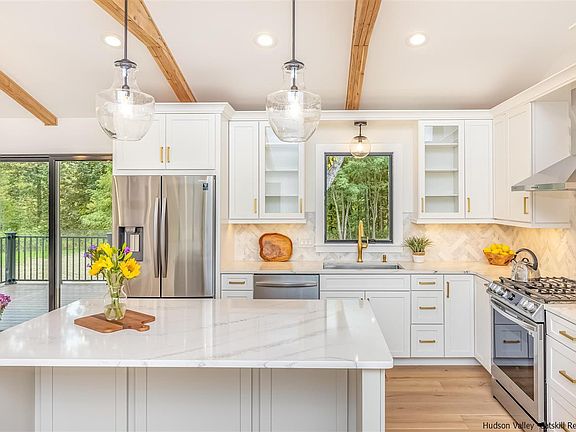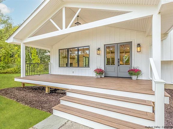 This completely reconstructed home is located on 7+ magical acres, surrounded by lush forestry and rolling meadows. You will not find a more peaceful and private sanctuary -all while being located just five minutes to the main street in the village of Millbrook, and all it has to offer. Stripped to the studs, this house was rebuilt in 2022 to a stylish, high-quality, mid century modern farmhouse. Everything in this house is brand new. Redesigned to optimize the beautiful, natural environment, every light filled room has multiple windows to provide generous, picturesque views. Porches on every side of the house invite an integrated outside living experience. The fantastic kitchen is well-equipped with modern high quality appliances, ample white cabinets, Cambria Quartz countertops, and a large island for cooking or eating. There are gorgeous white oak engineered hardwood floors flowing throughout the house. The open-plan dining/living room has cathedral ceilings with natural wood beams. The wood-burning fireplace provides ambiance to the whole room, as well as the ideal spot to get cozy. The house has 2 en-suites with the primary bedroom boasting a tray ceiling, walk in closet and beautiful bathroom with a frameless luxury glass enclosure. There is a lovely 3rd bedroom with private full bath, plus a den/office with separate entry and a carpeted walkout bonus/recreation room with a full walkout ready for the imagination. This home was completely re-engineered to be extremely energy efficient and low maintenance for many years to come. Additional features include: Underground electric, new roof, new well, new septic field. Closed cell spray foam insulation and energy-efficient doors and windows. Bosch high-efficiency electric pump and Central AC w/ 3 zones. Viessmann combination propane fired boiler for on demand hot water and back up heat. Everlast Composite siding. UltraShield all-weather decking. The grounds have plenty of room for a pool, horses, and gardens. All within 90 minutes to New York City. Come experience this special gem for yourself and let your senses and imagination come to life!