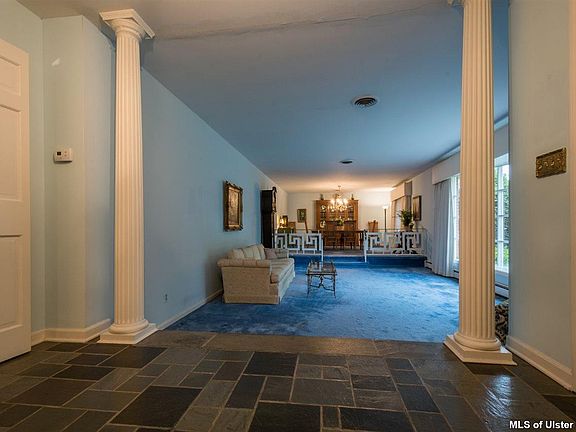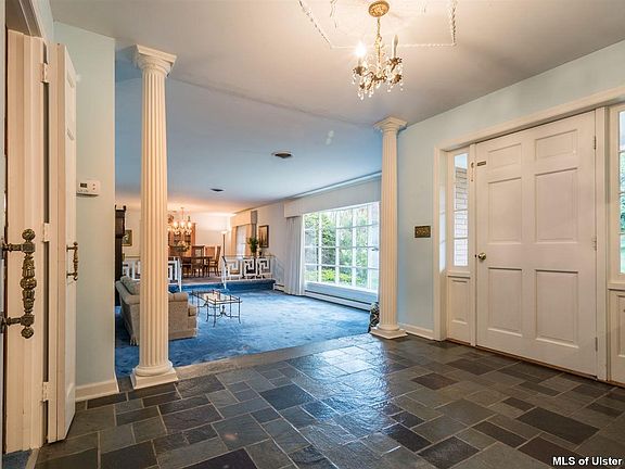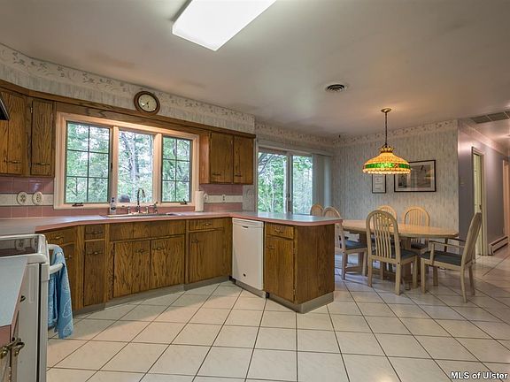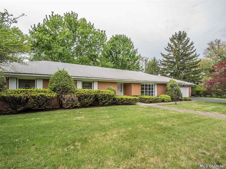 Sprawling brick ranch on desirable upper Pearl Street situated just outside the City of Kingston with Town of Ulster taxes. This well-constructed, one-owner, custom built home offers spacious rooms with a large, slate-floored foyer which opens to the gracious sunken living room with bow window and adjoining dining room. If you are looking for easy, one-level living this 4 bedroom home offers many features, such as, master bedroom with adjoining bath, lots of closet space, including a cedar, walk-in closet in the second bedroom and convenience of laundry room with full shower and adjacent half bath located between the kitchen and heated garage. Both the eat-in kitchen and family room have sliding glass doors leading to the 12' x 36' tiered, bluestone patio and private fenced backyard for your outdoor enjoyment. A beautiful marble fireplace in the family room is perfect for warming up on those chilly nights. The full basement, with walk-out to the backyard, has extra high ceilings.