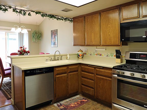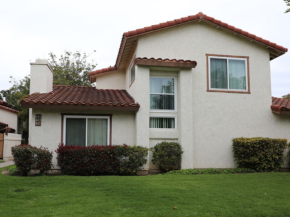 Enjoy ocean breezes in your beautiful new condo, only 3 miles from the beach. Light and bright 3 bedroom, 2 bath end unit in desirable quiet neighborhood in Oxnard. Spacious open living room with vaulted ceilings, brick fireplace, wet bar, and Morning Star bamboo flooring. Kitchen includes upgraded LG appliances, Bosch dishwasher, HiMacs solid surface, stain resistant countertops, Moen faucet, huge pantry, and plenty of cabinet space. Separate dining area with glass sliding door that leads to a cute outdoor patio area. This highly desired floorplan features 1 bedroom and bath downstairs plus 2 roomy bedrooms upstairs with vaulted ceilings and shared jack and jill bath. Each room has its own sink and vanity. Large master bedroom with double doors, ceiling fan, and walk in closet. Double pane energy efficient windows throughout. 2-car attached garage with workbench and tons of storage - there is also an additional dedicated parking space if needed.. Complex has a pool & spa for the warm summer days and regular lawn care included in the low HOA dues. Pride of ownership throughout. Hurry! This highly loved and cared for home won't last long.