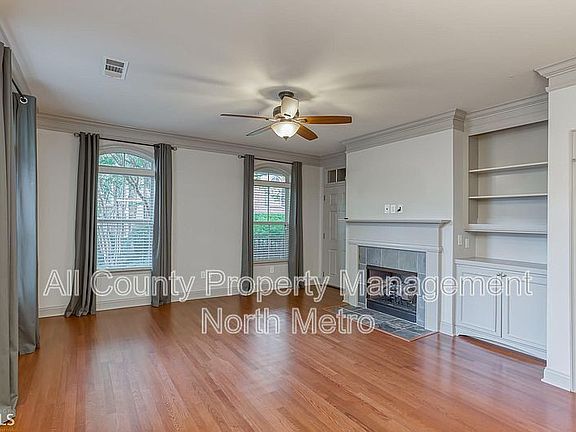 Welcome to this charming brick-front townhome in a gated Dunwoody community, just minutes from Perimeter Mall and a variety of dining and shopping options. This desirable end-unit overlooks the community pool and features a private garage and a welcoming front porch, perfect for relaxing outdoors. The interior offers an open-concept layout with hardwood floors, a decorative fireplace, and built-in bookshelves in the living room. The kitchen includes granite countertops, stainless steel appliances, a center island, and a clear view into the family room. With a split-bedroom floor plan, the primary suite is located on the main level, while the second bedroom and full bath are downstairsideal for added privacy. Enjoy low-maintenance living with access to a community pool in a prime Dunwoody location. Washer and Dryer included. Pets Allowed. Locally & professionally managed by All County Property Management North Metro, which offers a streamlined leasing process with self-guided tours available.