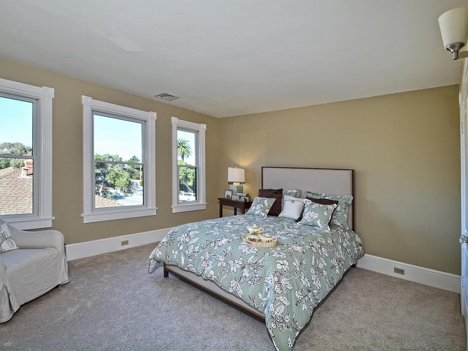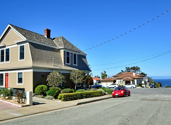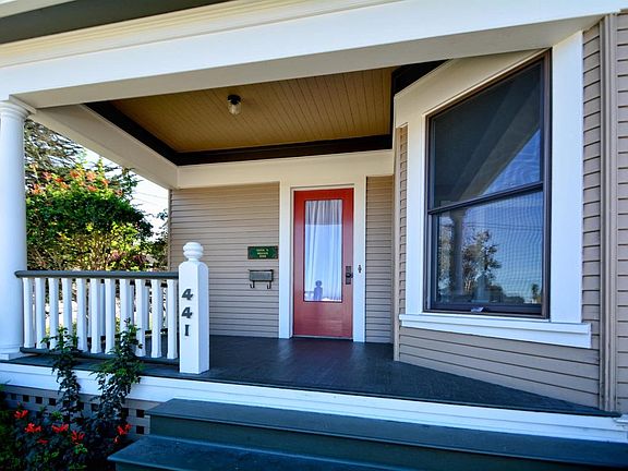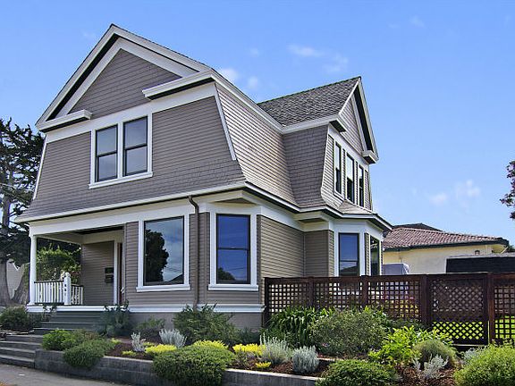 Located on a corner lot with some ocean views, this substantially redone 1906 home is beautiful to look at and has a wonderful floor plan. Improvements include: New dual pane windows and carpet; Kitchen and two full baths remodeled; Hardwood floors sanded and refinished; Fresh paint inside and out. Foundation work and roof done not too long ago. Includes off street parking and yard with deck.