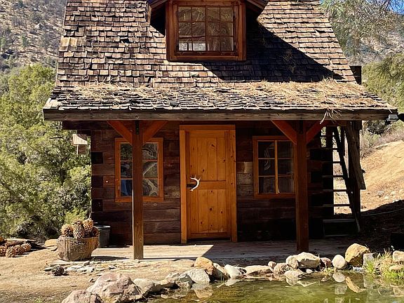 This Off the Grid Mountain Homestead is nestled in the mountains of Onyx with almost 44 acres of land. 2 Bed 2 Bath cabin/house is complete with its own solar for power, propane for heating, cooking, and refrigerators, and well for water and septic. As you walk through the front door you are greeted by the rustic dining/kitchen area. This quaint kitchen is equipped with a propane gas stove for cooking, and 2 gas refrigerators. Pantry for storage. Large living area with a wood burning stove surrounded by gorgeous rock and vaulted hard wood tongue and groove ceilings which gives a warm rustic feel. Large master bed w/ attached bath and walk-in closet. Bedroom 2 with guest bath close by. Indoor laundry room. Just outside you will find a small pond that is filled by the well water, adjacent to an enchanting small cabin with a wood burning fireplace to heat the up & downstairs. There are a few small out buildings for storage and shade. Property has its own fire hydrant. This place has pretty mountain views, trees, and wildlife that visits throughout the year. If you want a hidden gem to live full time or a cabin to get away for the weekend with a large amount of land, this is the place