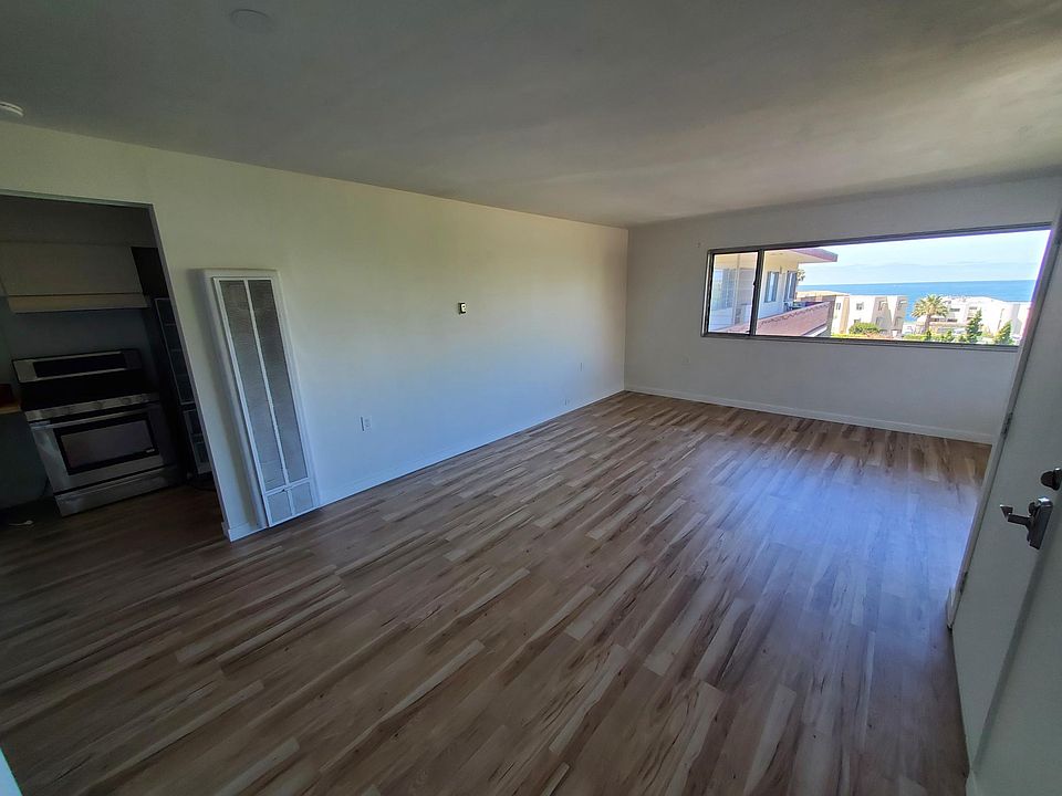 Spacious 1 bedroom, 1 bathroom apartment with gorgeous ocean view. Upstairs unit in 9 unit complex. Recently remodeled with new floors and upgraded appliances. Unit has large open floor plan with breathtaking view of the ocean and pacific sunsets. Comes with 1 parking space and includes all utilities except for electricity. Looking for a 1 year lease. Security deposit of 1 month's rent. No Pets and No Smoking. Owner pays water, sewer, gas, and trash. Tenant pays electricity 1 parking space included No Pets and No Smoking