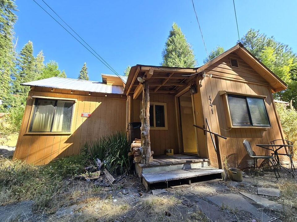 3Bdr/1Bth on 3 beautiful flat acres. 1297 SF., nice kitchen, rich wood cabinets, vinyl floor, double pane windows, garden window, laundry room, ceiling fans, water filter in kitchen, bathroom and at pump, good well per seller, wood stove, large shop with 220, storage building, garden area or dog run. RV or boat awning, , storage with room for small boat, lots of sugar pine, cedar Douglas fir trees, and an apple tree.