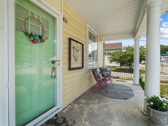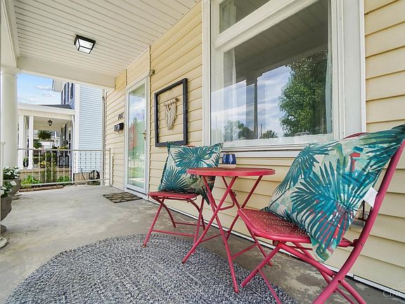 3BD 1.5BA home w/ approx. 950 sqft of living space with a full unfinished basement on a corner lot. You are welcomed by a charming covered front porch area, perfect for relaxing. Step into the living room filled with natural light, high ceilings, 10-inch baseboards, & refinished hardwood floors. Continue to the flex room with glass French doors, perfect for an office, family room, or playroom along w/ a bathroom & closet, previous owner used it as a bedroom. The eat-in kitchen has ample cabinet & countertop space as well as multiple windows that overlook the yard. Upstairs you will find 2 bedrooms both w/ walk-in closets and fresh carpet as well as a full bath w/ a window in the shower to bring in even more natural light. Step outside to enjoy the fully fenced in yard and landscaping. Conveniently located near High/Main streets w/shopping, coffee shops, restaurants, Hamilton High School, parks, bike path, and recreation. Large list of updates. *Virtually staged for possibilities*