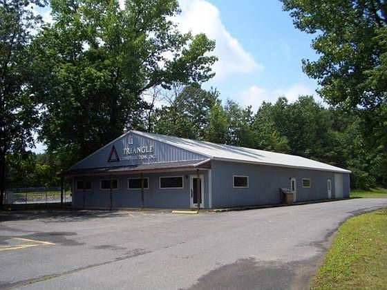 Single story commercial building, currently set up as office and warehouse. Near busy intersection, but set back off the road. 4500 square feet total, 10 car parking. Formerly Triangle Construction
