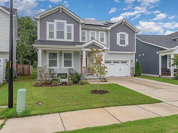 Come see this beautiful home in Wendell Falls. Private fenced lot. Immaculate 5 BEDROOM home built in 2022 with upgrades that pay off. Solar panels November 2022, Solar conveys to new owners at no cost, smart home, fenced yard, kitchen features maple cabinetry with soft close drawers, fridge conveys, gas stove, tankless water heater, blinds/window treatments included, solid oak treads & landings, upgraded pad and carpet, quartz counters in bathrooms, EVP hardwood through downstairs living areas and study. Large loft area. Garage storage.