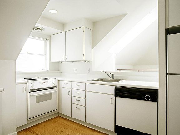Third-floor apartment located in a contemporary house with wood-burning fireplace; hardwood and carpeted floors; central air conditioning; washer and dryer; modern eat-in kitchen with refrigerator, range and dishwasher; exposed brick; skylights; private storage lockers and off-street parking available for an additional monthly fee. Resident is responsible for gas and electric. Off-street, uncovered parking, $50.00/month. Garages (where available), $115.00/month.