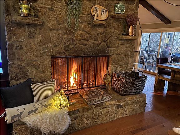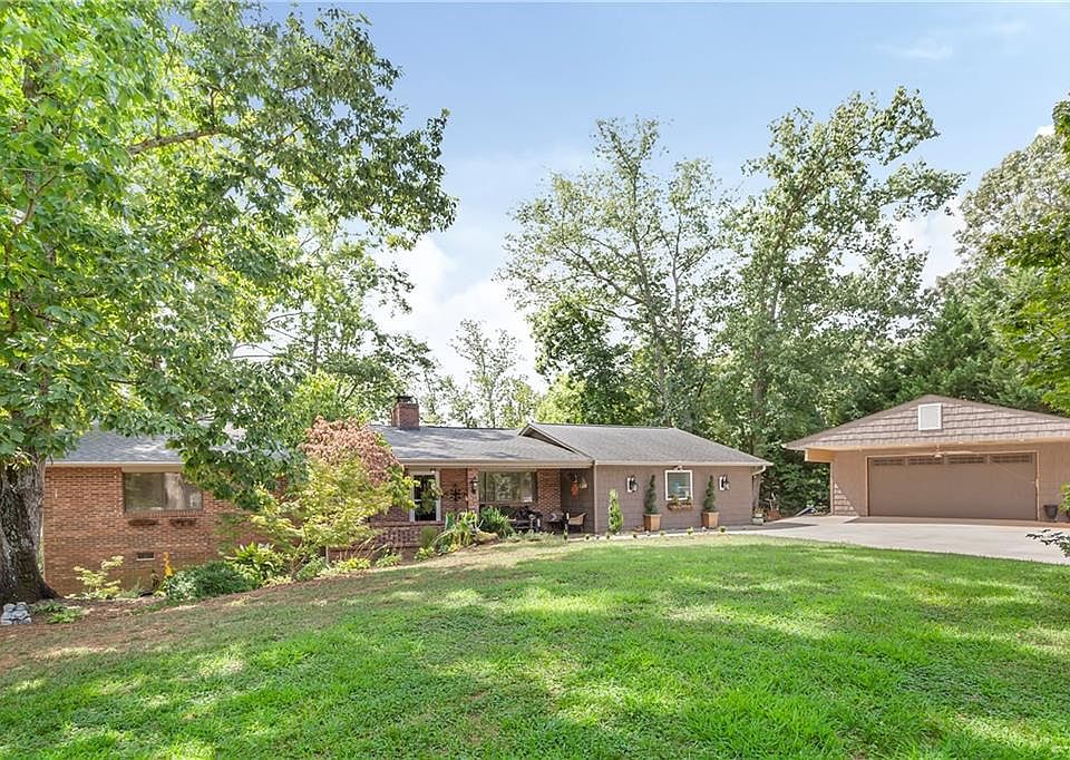 Incredibly cozy home on deep water with a covered dock in place. Lake views. Its like being in a birdhouse! 3 bedrooms and 3 baths with 2 being masters. A spa like bathroom with a 2 person hot tub and a roman shower with unique finishes. This home has an expansive deck with outdoor shower and large front porch with amazing custom touches. A HUGE rock fireplace is in the den that gives you the feeling you are in the mountains. The kitchen has recently been updated with all new kitchen aide appliances and the cabinets have just been painted by a local artist. Hardwood floors throughout except in the master. The 2 additional bedrooms have recently been completely remodeled down to the sheet rock. They have Brazilian hardwood floors and other custom features such as a jack and jill closet with a new closet system and sliding barn doors. There is a brand new EXRA LARGE detached garage perfect for a workshop and parking that is heated and cooled with its own system. The septic system was replaced last year and a new septic pump tank system was installed for the basement. The basement is partially finished and cooled for additional space. It is plumbed for a bathroom and has space for an additional bedroom or office and entertainment space. The porch below has stretches almost the entire length of the house to provide extra entertainment space with great views of the water.