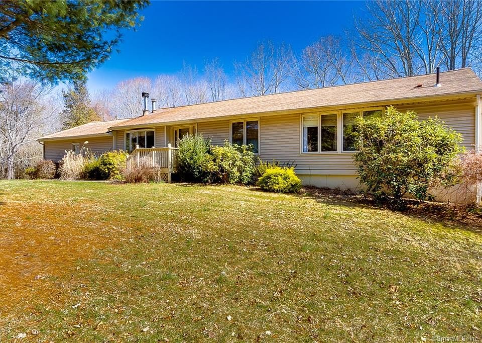 Enjoy easy one floor living with this well taken care of home only 3 minutes to Guilford Green yet is set on wonderful private setting. This 3 bedroom, 2 full bath ranch offers great open floor plan, remodeled kitchen with skylight, brand new stove. Living room with cathedral ceilings with bay window make it bright and airy, propane fireplace. Newer flooring throughout, beautifully remodeled bathroom, master bedroom with full bath. First floor laundry room. Large deck overlooking beautifully landscaped grounds with inground pool, brand new liner and 2 year old motor. New heating system. 2 car attached garage. Central air. This home is a must see!!