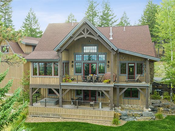 Situated in the esteemed Grouse Mountain Estates, this 4,450 sq ft gem sits minutes away from downtown Whitefish with panoramic views of Lost Loon Lake, Swan Mountains, and Whitefish Golf Course's South 18. Just 45 minutes from Glacier National Park, the main house offers three bedrooms, including a main-floor primary suite, and four bathrooms plus a loft/office. The apartment above the garage boasts a private entrance—ideal for guests. Indulge in upscale amenities: Sonos in-ceiling sound, a cozy wine room, twin natural stone fireplaces, exquisite Alder cabinetry, and 8' Alder doors. Modern comforts include instant hot water, electronic shades, an alarm system, a hot tub, a heated garage, a fire pit, and an irrigation system—all on a private, wildlife-rich 4.28-acre lot in a gated community. This haven isn’t just a home; it’s a direct line to nature. Whether you're seeking a secluded sanctuary or a base for Montana adventures, this residence embodies mountain living at its finest.