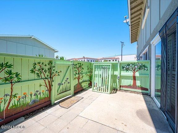 This charming center unit offers an abundance of natural light and features white cabinets throughout. Enjoy relaxing views of the pool from the comfort of your home, enhanced by elegant plantation shutters and vinyl windows. The unit boasts custom painting, a mirrored wall, updated light fixtures and plumbing fixtures, and laminate flooring on the upper level. The private patio, adorned with a charming mural, provides a peaceful outdoor retreat. The home is move-in ready, complete with a washer, dryer, and refrigerator. Located in a prime area, it's just a short distance from Allen Hancock College and Santa Maria High School, and offers easy access to a nearby park.