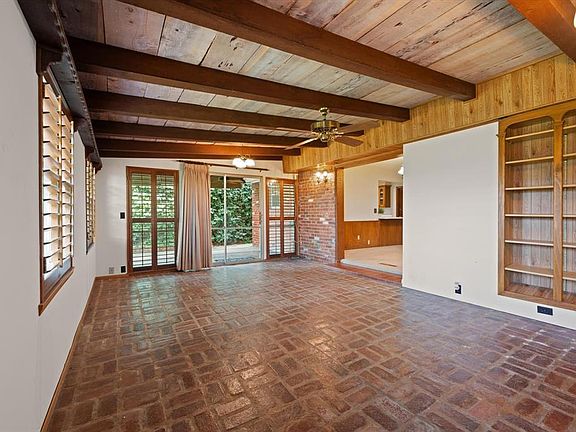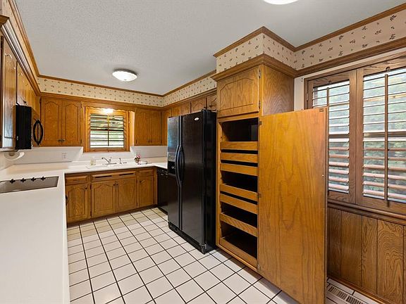 SWEET house packed with so much quality and care. Open kitchen/family room/dining with tons of kitchen cabinets including 17 roll out drawers which are a dream! Large Whirlpool oven with 2 racks, builtin LG microwave, Bosch dishwasher, Whirlpool refrigerator (it stays!). Lots of counter space - a cooks dream. Plantation shutters. Family room/dining room with beautiful brick fireplace with gas logs, a spacious hearth and wood mantel so cozy for winter gatherings open to large 2nd living with wood beams, bookcase, brick flooring, plantation shutters and access to large covered patio that is super fun! 3rd living is large and at the front of the house - perfect for a music room, game room, media room. 1 bedroom, 1 full bath on the main floor. 3 bedrooms, 1 full bath upstairs and don't miss the laundry chute and the walk-out attic access for convenient storage. All bedrooms are really nice sized and the largest one upstairs has 2 walk-in closets. Also upstairs has 2 closets. SO MUCH STORAGE. Wonderful space for laundry in the spacious garage. The yard is lovely with mature trees and landscaping that is very well taken care of and handy storage shed. Don't miss this opportunity. This is a very nice home that has been so well cared for.