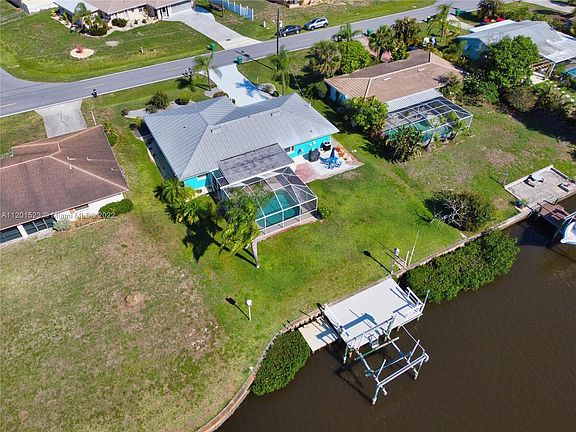 This Tastefully remodeled 3 bedrooms 2 baths with a two-car garage home pool; features, metal roof, 2020/ac unit, new floorings, remodeled master bathroom, new paint, new landscaping, new pool heater, new salt chlorine pool system, recessive lighting, new mini-split a the garage, automatic irrigation system, smart home. This is great to park your own boat in your own lift in the backyard and enjoy a short ride in this wide saltwater waterway canal with access to the Charlotte Harbor and the Gulf of Mexico. Only the Edgewater bridge exits the harbor. Also, great short-term vacation home rental for your own business in the winter season and for your enjoyment in the summer. don't miss the opportunity and be the first one to make an appointment !!