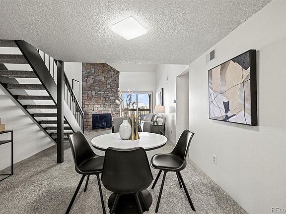 Welcome home! This fantastic End Unit 2-story condo nestled in a coveted Lakewood location close to the mountains, offering a peaceful retreat with no neighbors above, and only 1 shared wall! Largest unit with unfinished walk-in storage not included in sq ft.  As you enter, openness greets you, with the living room and dining room seamlessly connected and tall 2-story ceilings. Cozy up by the corner wood-burning fireplace in the living room, featuring a floor-to-ceiling stone surround that adds warmth and character to the space. Hang out on your private, covered deck freshly painted! The kitchen features newly painted cabinetry, and a new refrigerator. Two main level bedrooms are strategically located at opposite ends, providing added privacy. Both bedrooms share the spacious full bath with Dual Sinks.  The upper level is a loft with cozy carpeting, creating an ideal space for a bonus area or home office. Special door to Attic Space that's only in the end condos/3rd floor units!  Recent updates include newer A/C and hot water heater, new double pane windows, new sliding glass, new blinds, new interior paint throughout, newly painted deck!  Enjoy the added amenities of hot tub, clubhouse, and pool within the community, providing opportunities for leisure and recreation. Ideal location just minutes away from the mountains, parks, playgrounds, Colorado Mills, Belmar shops, Red Rocks with easy access to I-70, C470 and 6th Ave. With easy access to the mountains and downtown, this move-in-ready charmer is ready for you to call it your next home!