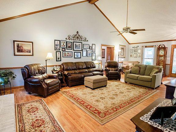 Immaculate all brick ranch home nestled on a 3.5 acre retreat with a huge screened porch overlooking the luxurious and relaxing pool area. The inside and outside of this home defines living at it's finest! The oversized family room with vaulted ceilings is a welcoming focal point. The large kitchen with a breakfast bar and loads of cabinets and counter top space is a chef's dream come true. The master bedroom is private with a champagne master bath/spa. The detached recreational building offers over 675 sqft of heated/cool living space. Great for entertaining and enjoying. Also a great place to get away. The recreational building also includes 1000 sqft of storage and a 25ft covered concrete pad. Plus there is a 3rd stick built detached building. The well manicured yard includes a garden area, grape vines, blueberry bushes, apple and peach trees. Imagine you there, don't miss out!!