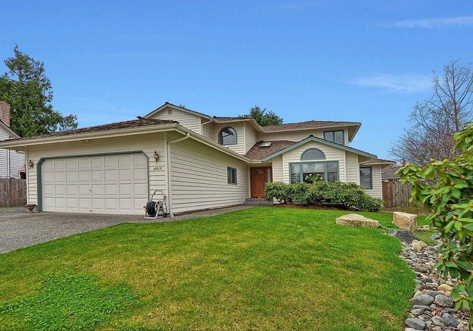 Move-In ready with cathedral ceilings, hardwood floors, skylights, walk-in closet, 5-piece master bath. The kitchen has maple cabinets, a desk area and an eating bar and leads to a large family room. Or step through fench doors to a big, open fully-fenced back yard with patio and separate covered porch, fruit trees and room for a garden or playset. In front is room for 6+ cars in addtion to the attached garage.