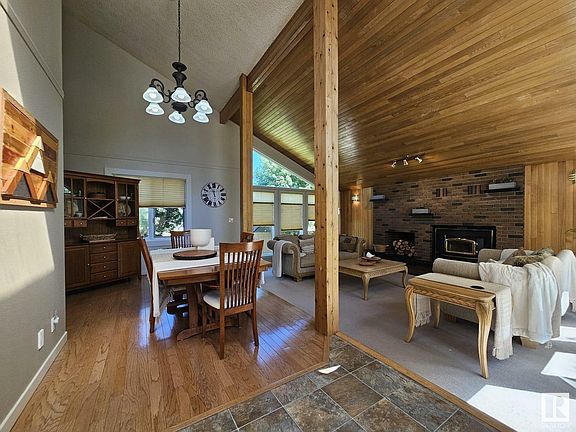 This beautiful home is located in a private cu-de-sac near Drayton Valley's hospital offering mature trees and a park nearby with quick access to walking trails! Upon entering the home you'll be thrilled with the soaring ceiling and brick enclosed fireplace in the living room. There's beautiful hardwood through much of the main living area and hardwood on the ceiling. The kitchen features stainless steel appliances and gives way to a private and fenced backyard with a gazebo, perfect for overtop a hot tub. The cozy family room on the main floor features another wood burning fireplace. The laundry room is on the main floor (granite sink) and provides access to a large double garage complete with overhead radiant heat. Upstairs one finds the master bedroom complete with ensuite and walk-in closet, along with the main bath and 2nd and 3rd bedrooms. Downstairs features a large bar great for entertaining, a recreations room, 4th bedroom and path. Parking pad out front long enough to accommodate RV's!