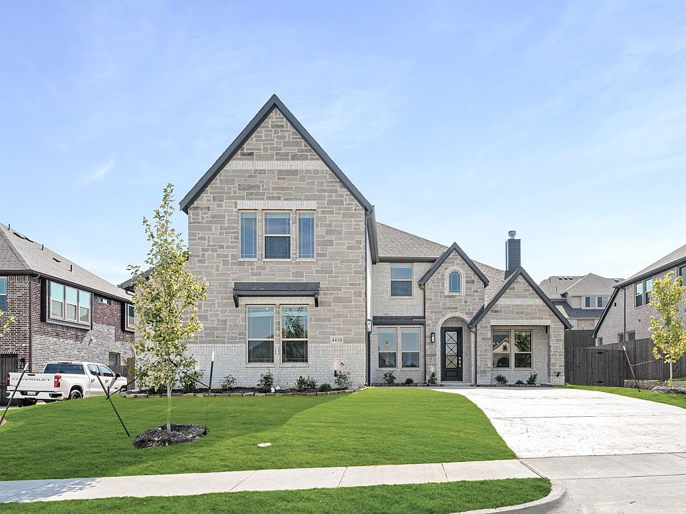 NEW, NEVER LIVED IN! Quick Close Ready! The Spring Cress II by Bloomfield exudes luxury with an upgraded brick and stone facade, cedar garage doors, and a custom 8' front door that make a striking first impression, all beautifully situated on an interior lot with a fully bricked front porch that enhances its timeless curb appeal. This expansive two-story home offers 5 spacious bedrooms and 4 baths, including a well-appointed Primary Suite and a guest room conveniently located downstairs. A swing garage adds both charm and functionality, while Level 2 RevWood Laminate flooring extends through the first-floor main living areas, paired with Level 3 upgraded carpet for comfort and style. The soaring Family Room is anchored by a breathtaking Floor-to-Ceiling Fireplace with a cedar mantel, creating a warm and inviting atmosphere ideal for gatherings. The Deluxe Kitchen is a chef’s dream, outfitted with sophisticated custom cabinetry, upgraded Quartz countertops, a sleek single bowl sink, undercabinet and pendant lighting for ambiance, pot and pan drawers beneath a rich wood vent hood, and all-electric stainless steel appliances including a Double Oven. A private Study enclosed with elegant dual doors provides a quiet retreat, while 8' interior doors on the first floor elevate the overall aesthetic and the nearby mud room adds everyday convenience. Upstairs, the Game and Media rooms offer endless entertainment, and thoughtful features like blinds, gutters, and a mix of Granite and Quartz surfaces throughout ensure both beauty and functionality. Call or visit today to explore this exceptional home!