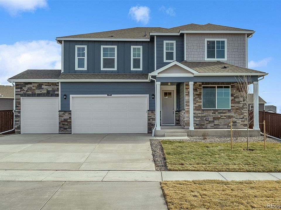 Introducing the Hennessy, a spacious two-story home boasting 2,718 square feet of luxury living. This five-bedroom, three-bathroom design features a versatile loft and a three-car garage, perfect for growing families or those in need of extra space. A large unfinished basement with rough in plumbing, and an active radon mitigation system are ready for extra storage or for a future finished area. Situated on a large corner lot in the desirable Crystal Valley community in Castle Rock, Colorado, residents enjoy easy access to a range of amenities, including a pool, fitness center, rec room, and playground. Front and backyard landscaping are included, completing this stunning home just minutes from everything you need. ***Estimated Delivery Date: March. Photos are representative and not of actual property***