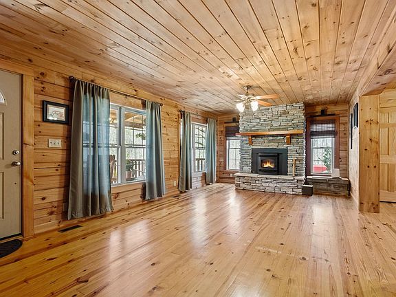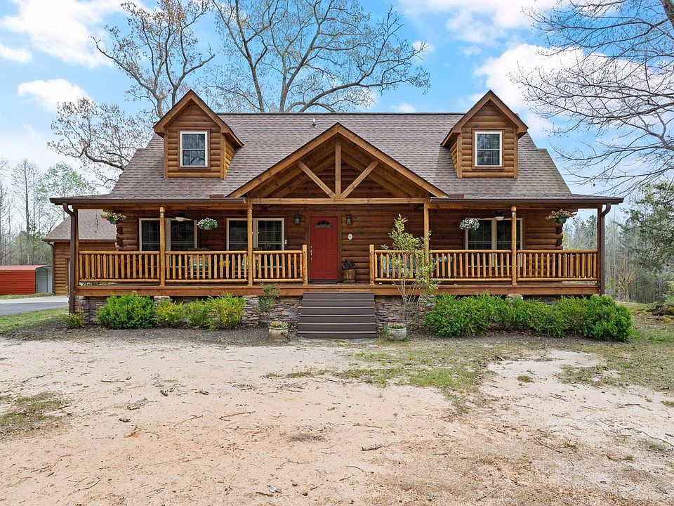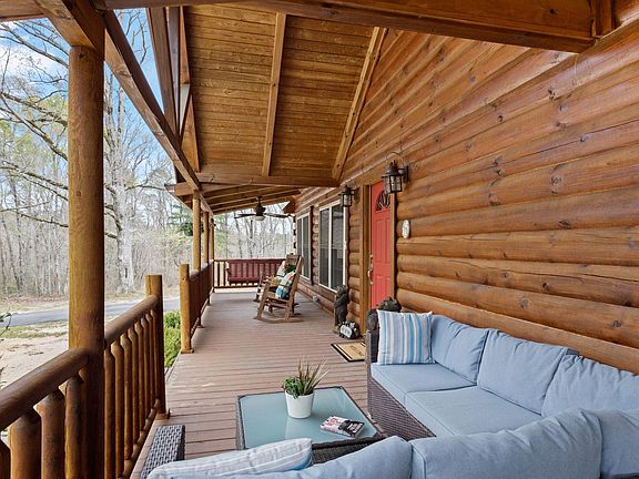 Nestled within 10.26 acres of pristine, unrestricted land, this custom-built log cabin offers a serene escape surrounded by hardwood trees and country views. This spacious retreat boasts over 2,000 square feet of floor-to-ceiling hardwood craftsmanship, blending rustic charm with modern comforts. Outside, an enclosed saltwater pool signals for refreshing dips, while a covered deck and fire pit provide perfect settings for outdoor gatherings. Multiple porches offer ample space for relaxation. Additionally, a barn with workshop, R.V. carport, and detached 2 car garage with finished living area upstairs provide plenty of storage and versatility. Whether you're seeking a weekend retreat or a permanent residence, this property boasts country living at its best. Great location! Great home! Great price! Schedule your private showing today.