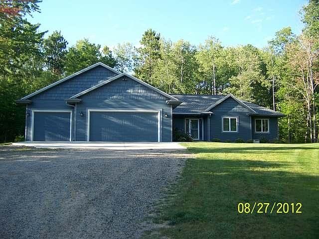 This 2009 quality custom built home by John Rottier has a great floor plan and located in a quiet sub-division just on the outskirts of Rhinelander. This country home on 1.81 acres has 3 bedrooms, 2 1/2 baths featuring a spacious kitchen with maple cabinetry, black appliances, range hood, snack bar, dining area and living room with gas fireplace. The home features central air, arched door ways, foyer with tile floor and closet, access to basement also through the 3 car attached garage, open deck and a main floor laundry. The master bedroom has walk-in closets, full bath and a tray ceiling. The basement is unfinished with daylight windows, sump pump and plumbed for a bathroom (pump station also installed). A nicely landscaped yard and a beautiful country setting on a no through road offering quality, privacy and convenience.