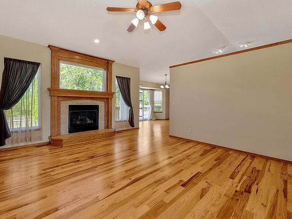 Wonderful location at the back of Eagles Landing neighborhood across from the lake and backs to tree line! Freshly painted inside and out. This spacious home is nicely maintained and move-in ready. Plenty of windows and vaulted ceilings to let in the natural light. Hickory floors in main living spaces. Living room with fireplace. Spacious kitchen with island, all appliances, and a separate laundry room. Split bedroom plan. Large primary bedroom with attached bathroom with separate tub/shower and walk-in closet. Two additional bedrooms above ground with an additional bathroom complete the main level. The view-out basement is spacious and offers family room, bedroom, bathroom, and finished bonus room. A large storage/mechanical room is also located in the basement. Very private, treed lot with fence and sprinkler system. Just minutes away from K-96 and Hwy 254 for easy access around town. Welcome home!
