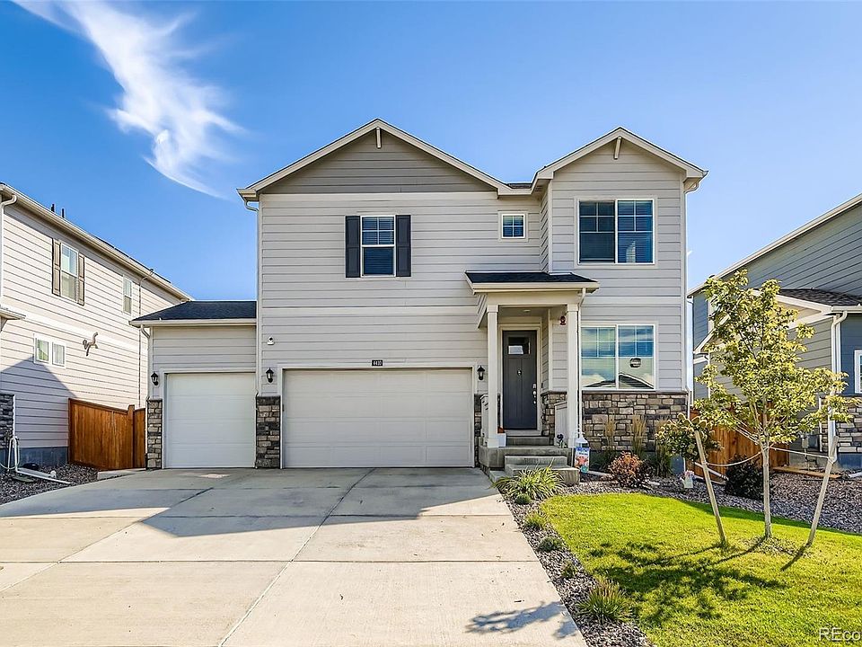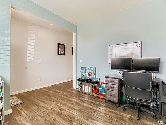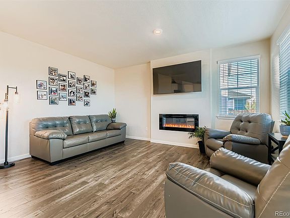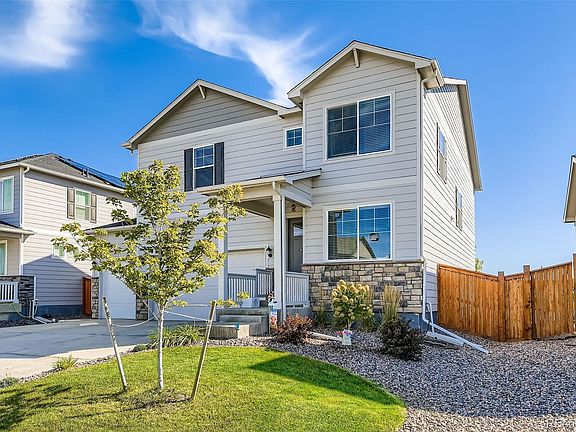 Welcome to this spacious and upgraded Holcombe model in the Lakeside Canyon community, a rare resale opportunity that offers better value than new construction. Set on a 6,325 sq ft lot, this 2,465 sq ft two-story home includes 4 bedrooms, 3 bathrooms, a dedicated main-level study, and a 3-car garage. Unlike new builds, this home already features a custom-built deck, saving thousands in post-close upgrades. Inside, the main floor showcases an open-concept layout with a great room and fireplace, bright dining nook, and a kitchen outfitted with quartz counters, a large island, stainless appliances, classic cabinetry with crown molding, and a walk-in pantry. Upstairs, you'll find all four bedrooms, including a spacious primary suite with a walk-in closet and full bathroom. Two of the additional bedrooms also feature walk-in closets. A large laundry room completes the upper level. Smart home features include a video doorbell, smart locks, thermostat, lighting, and garage openers. Additional highlights include a tankless water heater, central A/C, radon mitigation system, double-pane windows, laminate wood flooring, and a professionally landscapeding. Located in the highly regarded St. Vrain Valley School District and easy access to I-25, this home combines comfort, space, and long-term value in a growing community. Don’t miss your chance to move into a like-new home without the wait or the extra costs.