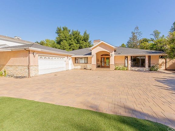 S of the Blvd, this gated 1-level, 4 bed home is nearly 4,400 sf w/ brick, circular driveway. An impressive, covered front porch leads to the elegant double-door grand foyer. Featuring high ceilings, recessed lighting & high-quality wood floors thru-out, formal living room showcases lg, curved wall of windows providing tons of natural light. Open floorplan allows for easy entertaining w/ enormous great room/family room w/ oversized FP, wall of French doors that open to the exquisite backyard, & high ceilings w/ skylight. A generous-sized remodeled kitchen boasts granite countertops, SS appliances, including double wall oven (1 = convection) & a bright breakfast area w/ access to the backyard. Host lg dinner parties in the huge, formal dining room w/ tray ceiling. All bedrooms are good-sized w/ ample closet space. The master suite features high ceilings, raised corner fireplace w/ hearth seating, & French doors that lead to the back patio. A luxurious en-suite bath includes lg soaking tub & separate walk-in shower w/ bench seating, a bidet & dual sinks. The resort-like backyard has a multi-level patio w/ lg, pergola-covered portion that includes built-in barbeque area & ceiling fans. Enjoy cool nights in the in-ground spa & spend hot, summer days splashing around in the in-ground pool. Plenty of grassy area for pets or outdoor fun & all surrounded by lush, mature landscaping for added privacy. Located in Lanai Elementary school district & blocks to blvd shopping & dining!